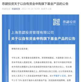 至少88亿元!众多公私募陆续宣布:自购! 公私募自购旗下产品的步伐仍在继续。 10月28日,思勰投资发布公告称将自购不低于1亿元。不久前富国基金也加入自购“阵营”。至此,今年以来已有20余家头部私募宣布自购,自购总金额超过28亿元,公募基金自购金额超过60亿... 追马博客 新闻资讯 2022-10-29 352 阅读 0 评论