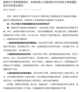 国家外汇局:2022年前三季度我国货物贸易顺差创历史同期新高 中新网11月4日电 据国家外汇管理局微信公众号4日消息,日前,国家外汇管理局公布了2022年三季度及前三季度国际收支平衡表初步数据。国家外汇管理局副局长、新闻发言人王春英表示,2022年前三季度,我国货物贸易顺差创历... 追马博客 新闻资讯 2022-11-04 349 阅读 0 评论
