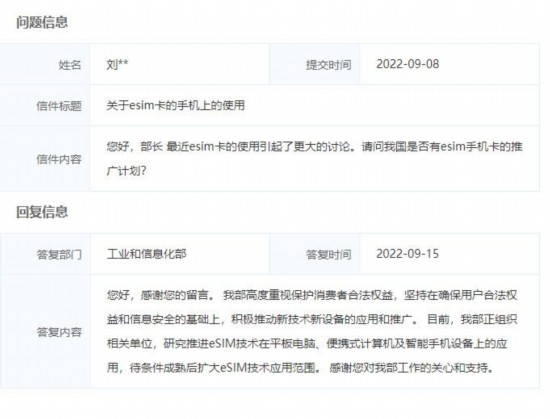 “正组织相关单位,研究推进eSIM技术在平板电脑、便携式计算机及智能手机设备上的应用,待条件成熟后扩大eSIM技术应用范围。”近日,工信部在回复网友提问中谈到的eSIM引发关注。