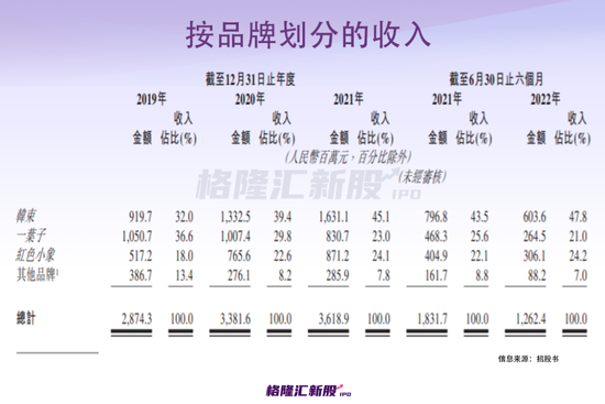 具体来看,公司收入主要来源于韩束、一叶子、红色小象这三个2015年及之前推出的老品牌,报告期内,这三个品牌的产品为公司贡献了近9成收入。相较于韩束等老品牌的吸金能力,上美集团近年来推出的新品牌营收占比明显偏低。